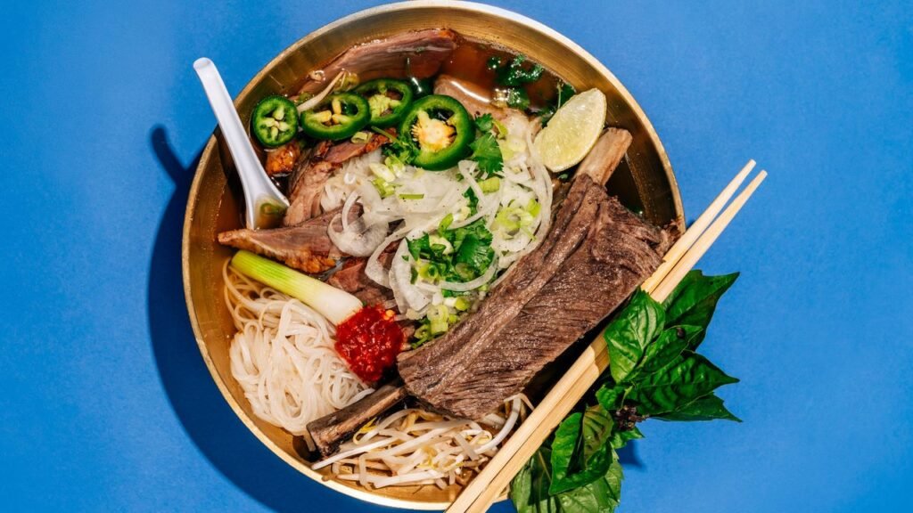 O chef Jas Phan, que também dirige a comida da rua Migo Saigon em Asiatown com sua esposa, Thanh Nguyen, traz talento teatral para Pho. Ele serve suas sopas fumantes e perfumadas em tigelas de pedra escaldantes. As mechas de vapor contribuem para o ambiente da sala de jantar colorida forrada com mesas comunitárias e esculturas de peixes penduradas. Cada tigela vulcânica chega borbulhando furiosamente. O macarrão, o filé mignon, o peito, as almôndegas e as ervas são servidas ao lado. Os clientes podem adicionar os ingredientes de uma vez ou pouco a pouco – para que o macarrão não fique encharcado e a carne cozinha apenas. Este Pho se tornou viral online, cortejando com razão os clientes enquanto homenageia suas raízes vietnamitas.
