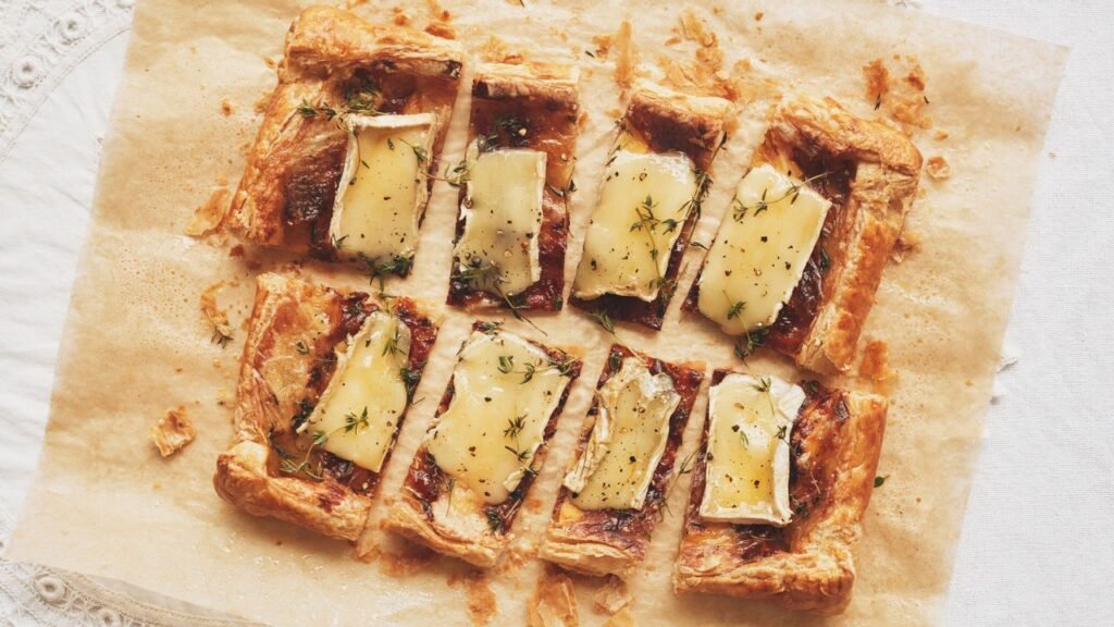 Esta galette Brie é a melhor comida de festa – e mais fácil! Um aperitivo doce-salgado com 5 ingredientes que leva apenas cinco minutos para ser preparado.