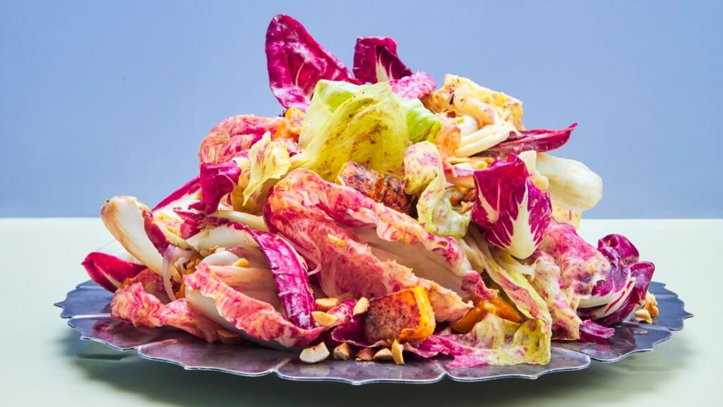 Quando finalmente cheguei em casa do frenesi de jantar deste ano, ansiava pelo frescor. Inspirando-se em algumas das minhas saladas de restaurantes favoritas, esse número de abóbora e radicchio se tornou minha comida caseira de retorno a casa. O Sherry Vinagrete é cortado com pedaços de queijo azul cremoso, um truque inspirado na minha salada favorita na Via Carota, no West Village, em Nova York. Em vez de comer direto da tigela como eu normalmente, pego uma página da Meetinghouse na Filadélfia, um bar de destaque onde a imponente salada verde quase toca o teto e empilhe minhas folhas no alto de um prato. A salada entra no meio da mesa como uma peça central, e meu parceiro e eu aconchegamos, comendo casualmente com os dedos. Depois de tantas semanas de refeições de restaurantes, é o que mais perdi.