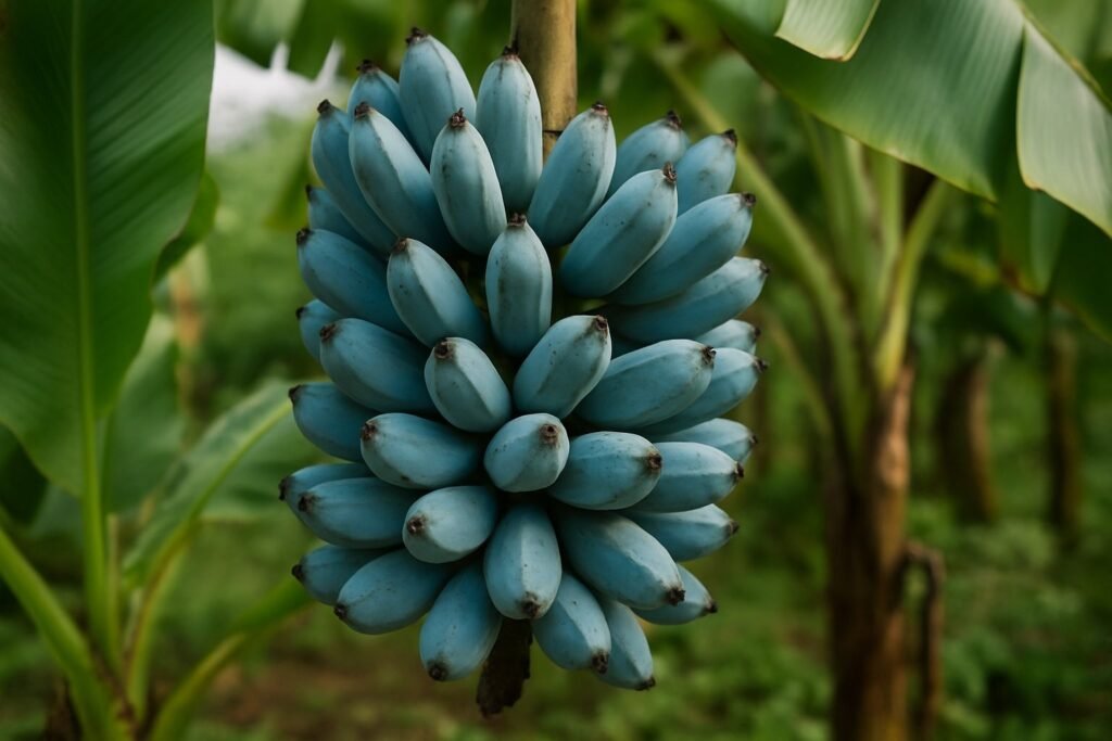 Com casca azulada e polpa cremosa, essa variedade de banana se destaca tanto pela aparência quanto pelo sabor, frequentemente comparado ao de sorvete de baunilha.