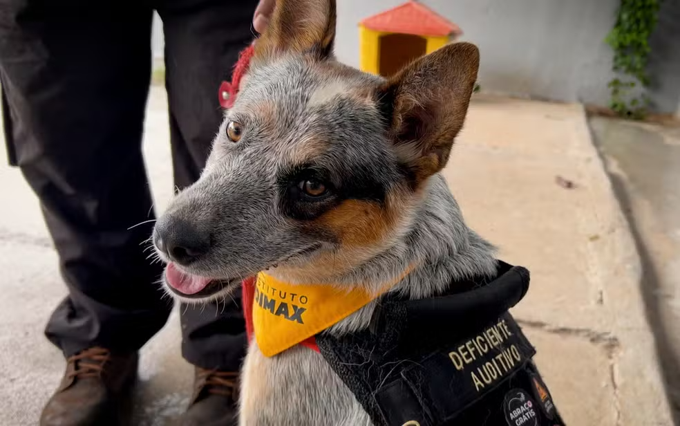 O cão da raça blue heeler nasceu com surdez congênita e está sendo treinado para atender crianças com deficiência auditiva no projeto Doutor CãoPaixão, da ONG CãoPaixão, em Ribeirão Preto (SP).