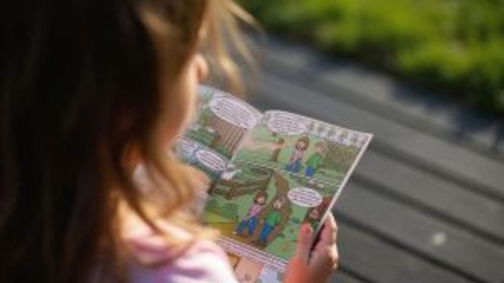 A escolha das histórias em quadrinhos como formato de comunicação se deu por ser uma linguagem lúdica, educativa e acessível, capaz de encantar e atrair as crianças de forma eficaz.
