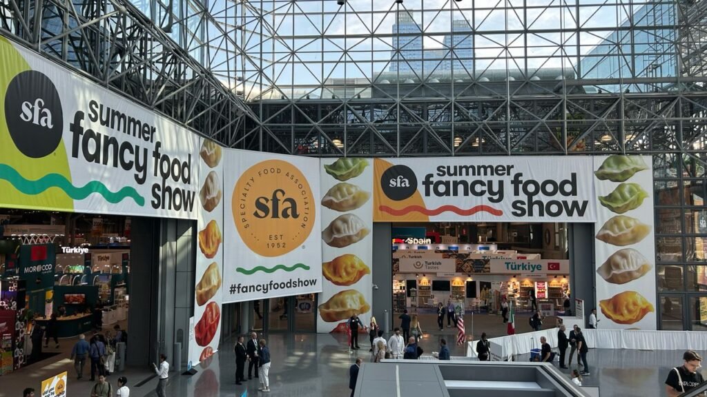 Andar no chão do Javits Center de Manhattan se sentiu surpreendentemente semelhante a uma viagem após o trabalho ao supermercado. Eu passei pelos corredores lotados e iluminados por fluorescentes, seguindo o cheiro fraco de queijo e enchendo uma sacola de compras reutilizável. Os compradores vestidos com alimentos fritos de olhos casuais casuais sob lâmpadas quentes e cuidadosamente consideradas intermináveis fileiras de molhos, lanches e refrigerantes. Então, um mascote vestido como um pacote de azeitonas passou, quebrando o feitiço.