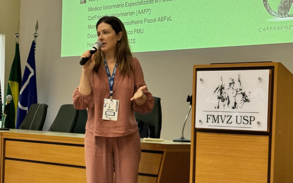 Durante a XXXIV Semana Acadêmica de Medicina Veterinária (Sacavet), da Faculdade de Medicina Veterinária e Zootecnia, da Universidade de São Paulo (FMVZ-USP), a médica-veterinária Camila Ferreiro realizou uma palestra sobre a atualização do diagnóstico e tratamento da Peritonite Infecciosa Felina (PIF), que é causada por um coronavírus, um vírus que circula naturalmente na população felina principalmente em locais multicats, como abrigos.