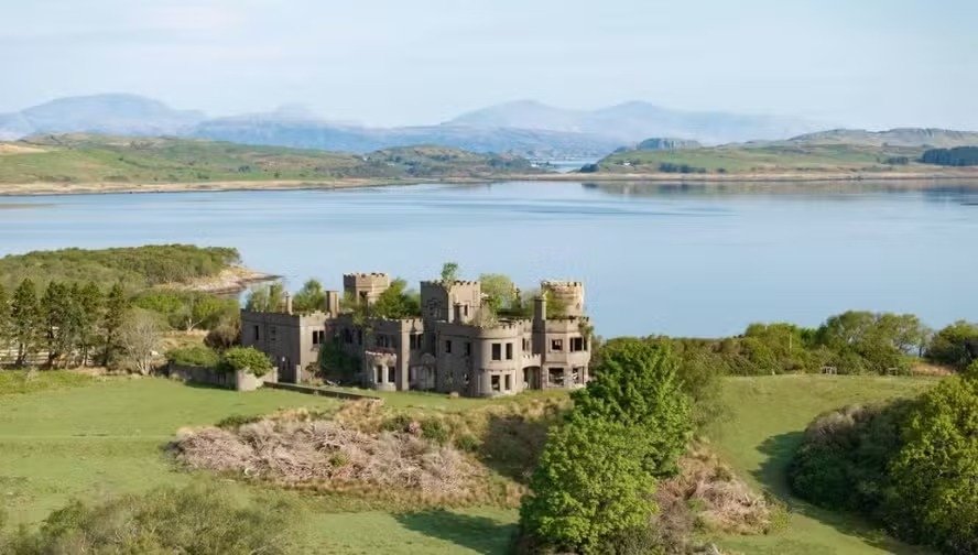 Buckley construiu o “castelo” da ilha, com torres e tudo, a um custo equivalente hoje entre £ 10 e £ 30 milhões, segundo os corretores. Eles também afirmam que o arquiteto de Buckley estava a bordo do Titanic rumo aos Estados Unidos para vender projetos de mais castelos semelhantes ao de Shuna.