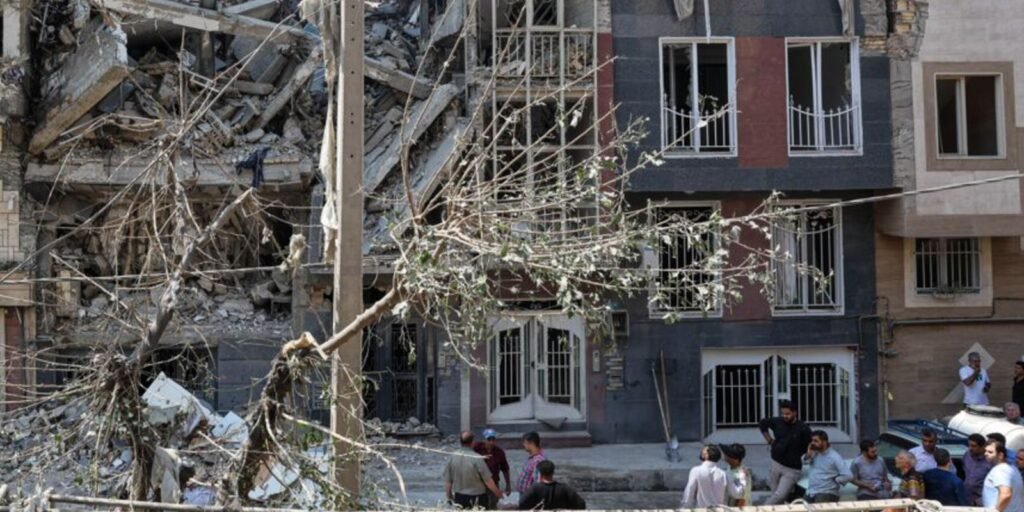 Prédios danificados em Teerã após ataques israelenses na sexta-feira. Foto Agência de Notícias da republica Islâmica. Agência de Notícias da republica Islâmica.