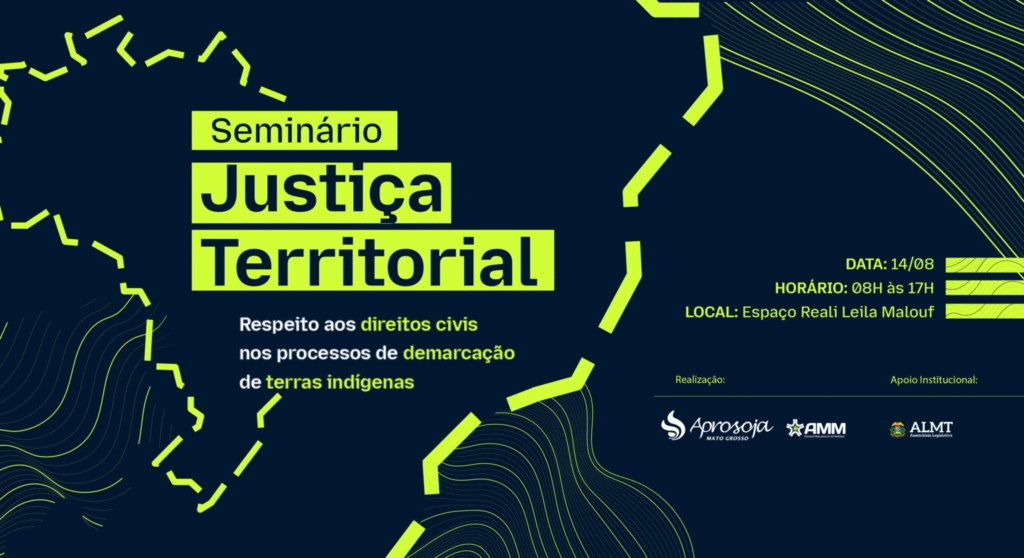 Na próxima quinta-feira (14), a cidade de Cuiabá (MT) será o palco do “Seminário Justiça Territorial – Respeito aos direitos civis nos processos de demarcação de terras indígenas”. O encontro é promovido pela Associação dos Produtores de Soja e Milho de Mato Grosso (Aprosoja MT) e pela Associação Mato-grossense dos Municípios (AMM) e será realizado a partir das 8h, no Espaço Reali. Estarão presentes autoridades, juristas, representantes do setor produtivo e da sociedade civil.
