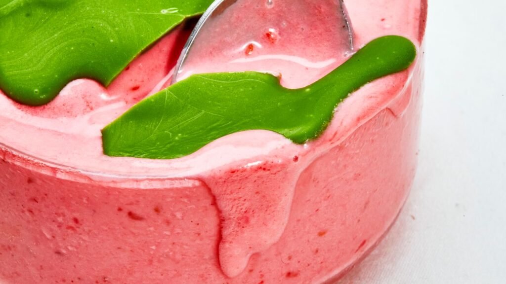 É assim: misture uma xícara de iogurte grego simples com cerca de uma xícara de bagas congeladas, um toque de creme, se você quiser e algumas colheres de açúcar. Congelamento, feito. Assim como um bolo clássico de iogurte francês, onde os ingredientes são medidos diretamente na xícara de iogurte, descobri que um copo de iogurte de fruta congelado é exatamente a quantidade certa para produzir algo frutado e cremoso, mas não diluído. Um pequeno período no freezer leva de “Isso é uma tigela de smoothie?” Para “Você tem uma máquina Froyo?” A concha de chocolate branca no topo é totalmente não essencial, mas irresistivelmente divertido, uma bainha verde vibrante espalhada sobre o iogurte rosa (parecido com os lattes em camadas que conhecemos e amamos).
